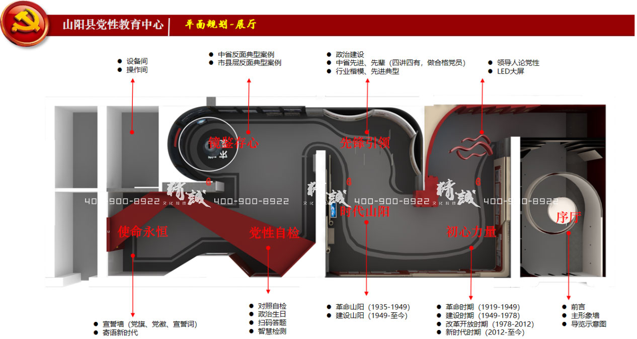 商洛山陽縣黨性教育中心展廳設(shè)計(jì)平面布局