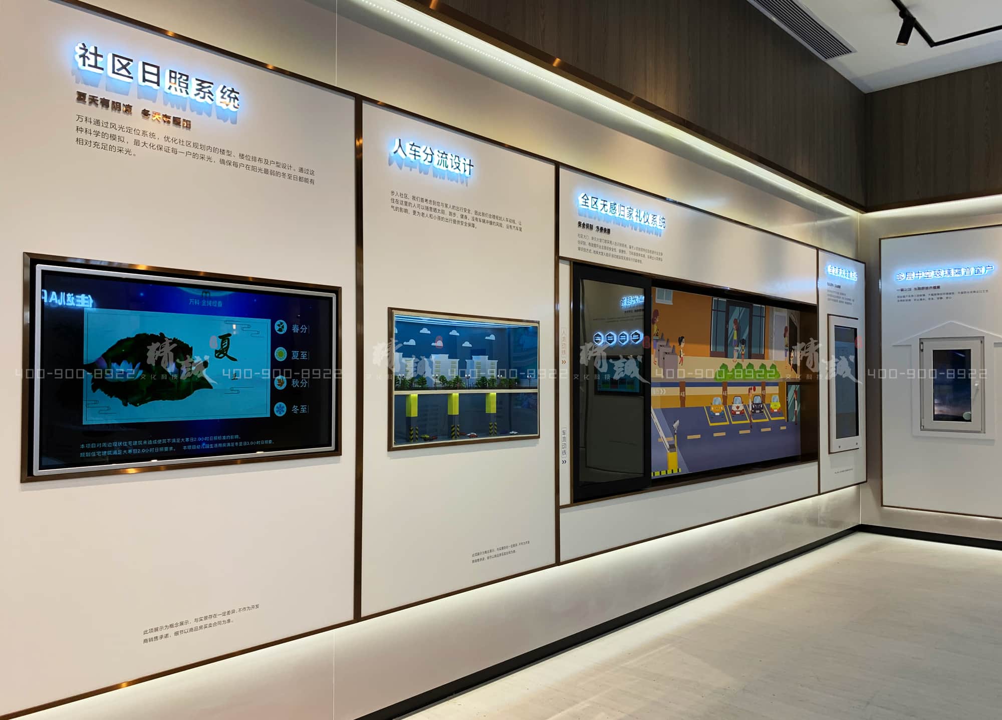 從觸摸屏的社區(qū)日照系統(tǒng)展示,到人車分流的微縮場景,再到互動滑軌屏展示的全區(qū)無感歸家禮儀系統(tǒng)。