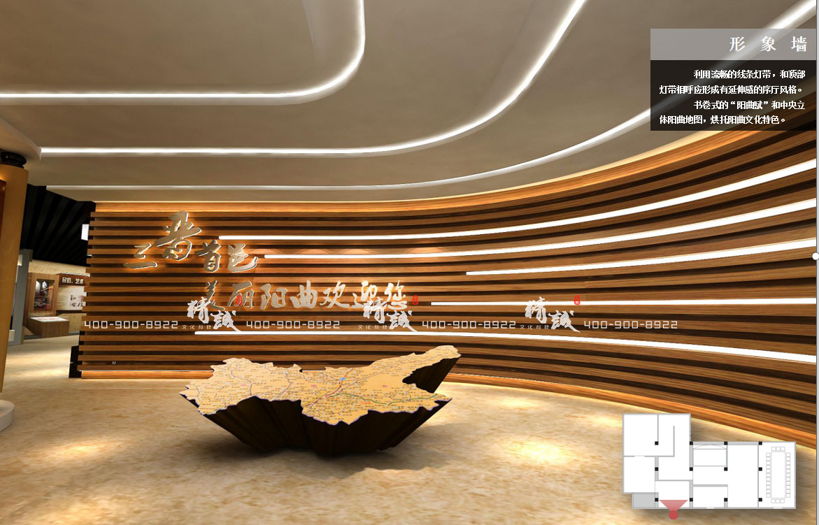 書卷式的“陽曲賦”和中央立體陽曲地圖,烘托陽曲文化特色。