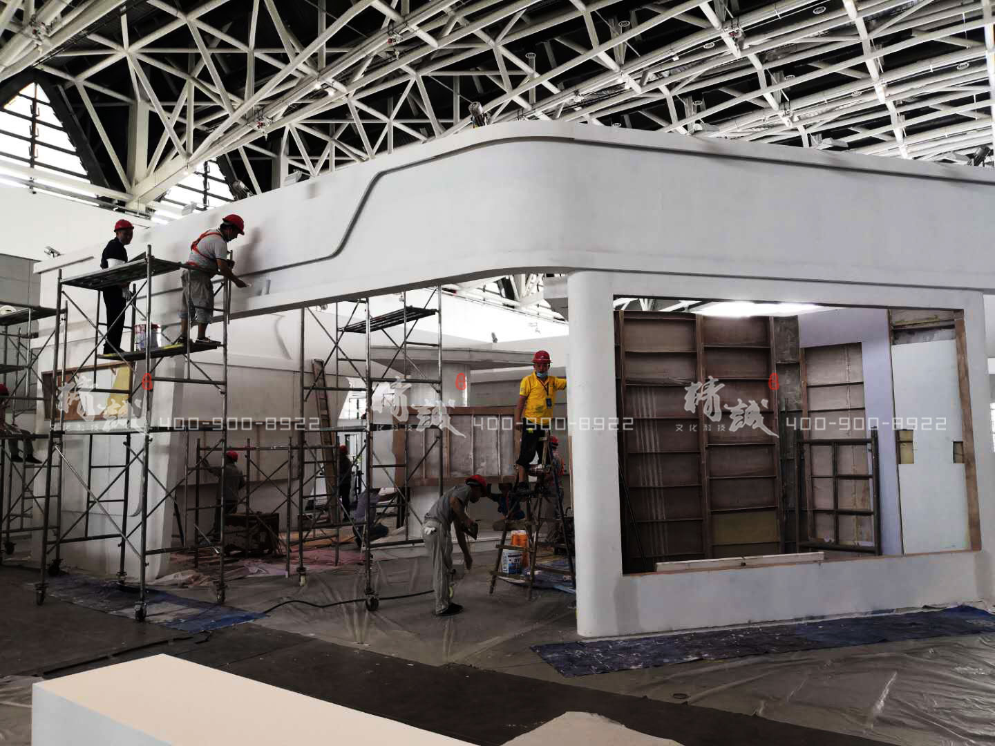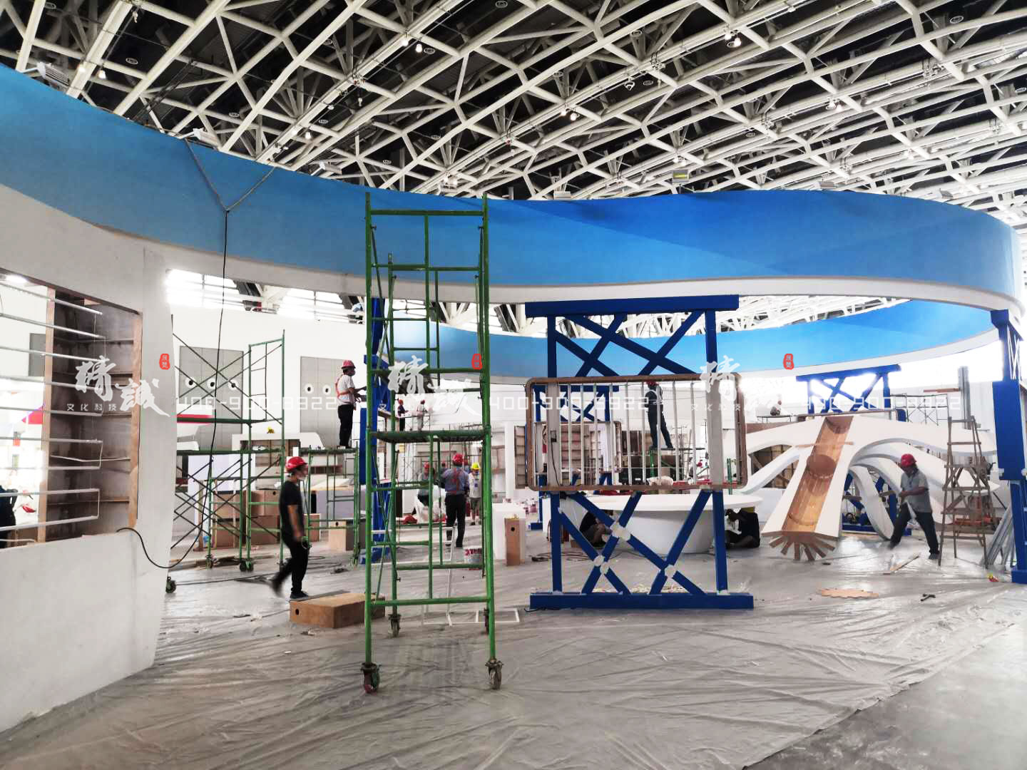 精誠展覽工作人員現(xiàn)場搭建銅川展臺