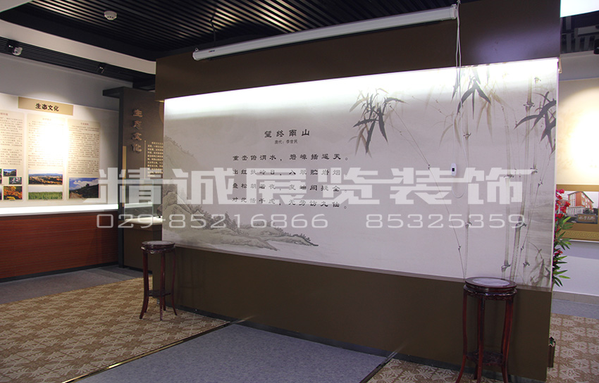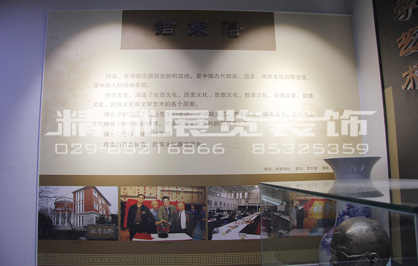 終南學(xué)社文化館是由精誠展覽裝飾在建設(shè)工作中參與競標(biāo),較終通過方案,并經(jīng)過詳細(xì)的策劃、設(shè)計、施工完成。我們始終秉承精益求精的匠心,堅持專業(yè)化的理念,力圖為客戶制定獨(dú)具特色的個性化方案、精湛的施工品質(zhì)。