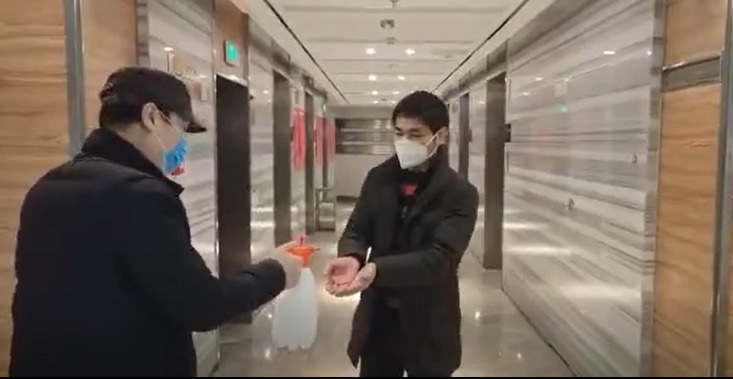 一大早,負(fù)責(zé)區(qū)域消毒工作的同事就提前完成了公共區(qū)域的消殺工作,努力做到全面消殺,不留死角。