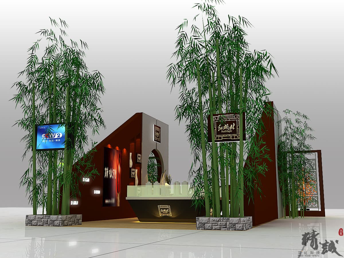 如果參展企業(yè)是一個大公司,就不能將其設(shè)計成攤販形象;如果參展企業(yè)想顯示在航空領(lǐng)域的霸主地位,就不能將其設(shè)計成航模玩具廠的感覺。設(shè)計人員需要有用具體的手段表現(xiàn)出抽象的展覽思想。