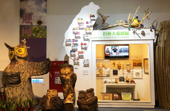 貓頭鷹幸福社區(qū):貓頭鷹的木雕造型與現(xiàn)代櫥窗相結(jié)合,櫥窗是木板烤漆制作美食鄉(xiāng)宴:竹屋的藝術(shù)造景櫥窗里面陳列了各種鄉(xiāng)下美食,通過玻璃隔斷上的二維碼,掃一掃可以進(jìn)行線上購買,在這個展館當(dāng)中,沒有設(shè)置線下的文創(chuàng)商店,都是通過這種櫥窗展示,線上下單購買文旅商品,節(jié)省出更多的空間給展示功能區(qū)