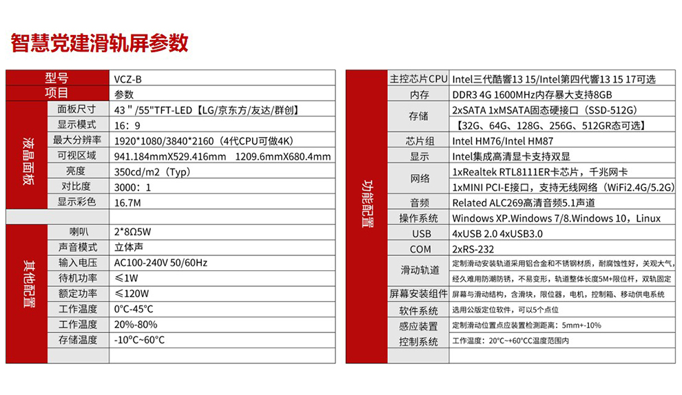 100周年黨史整體解決方案|智慧黨建滑軌屏參數(shù)