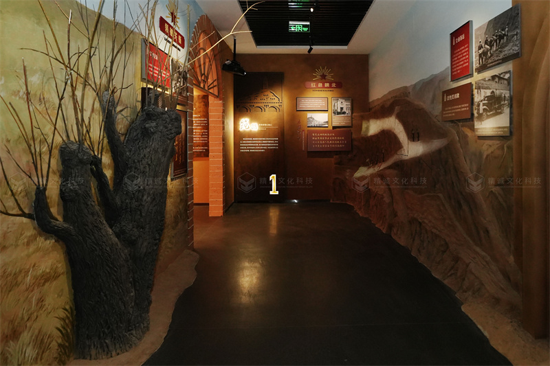 在策展前期,精誠(chéng)項(xiàng)目團(tuán)隊(duì)和業(yè)主方進(jìn)行了多輪深入地溝通,由此厘清了展館的思路和定位:既以延安精神為內(nèi)核,以時(shí)間線為脈絡(luò),以鐵路文化符號(hào)和陜北地域特色為載體,去講述陜北革命老區(qū)鐵路變遷的歷程。鐵路行業(yè)展館設(shè)計(jì)施工-陜北鐵路展館案例展示