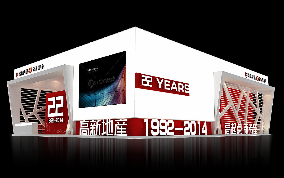 下圖是我公司(陜西精誠展覽裝飾有限公司)為高新地產(chǎn)設計的展覽效果圖,可供參考: