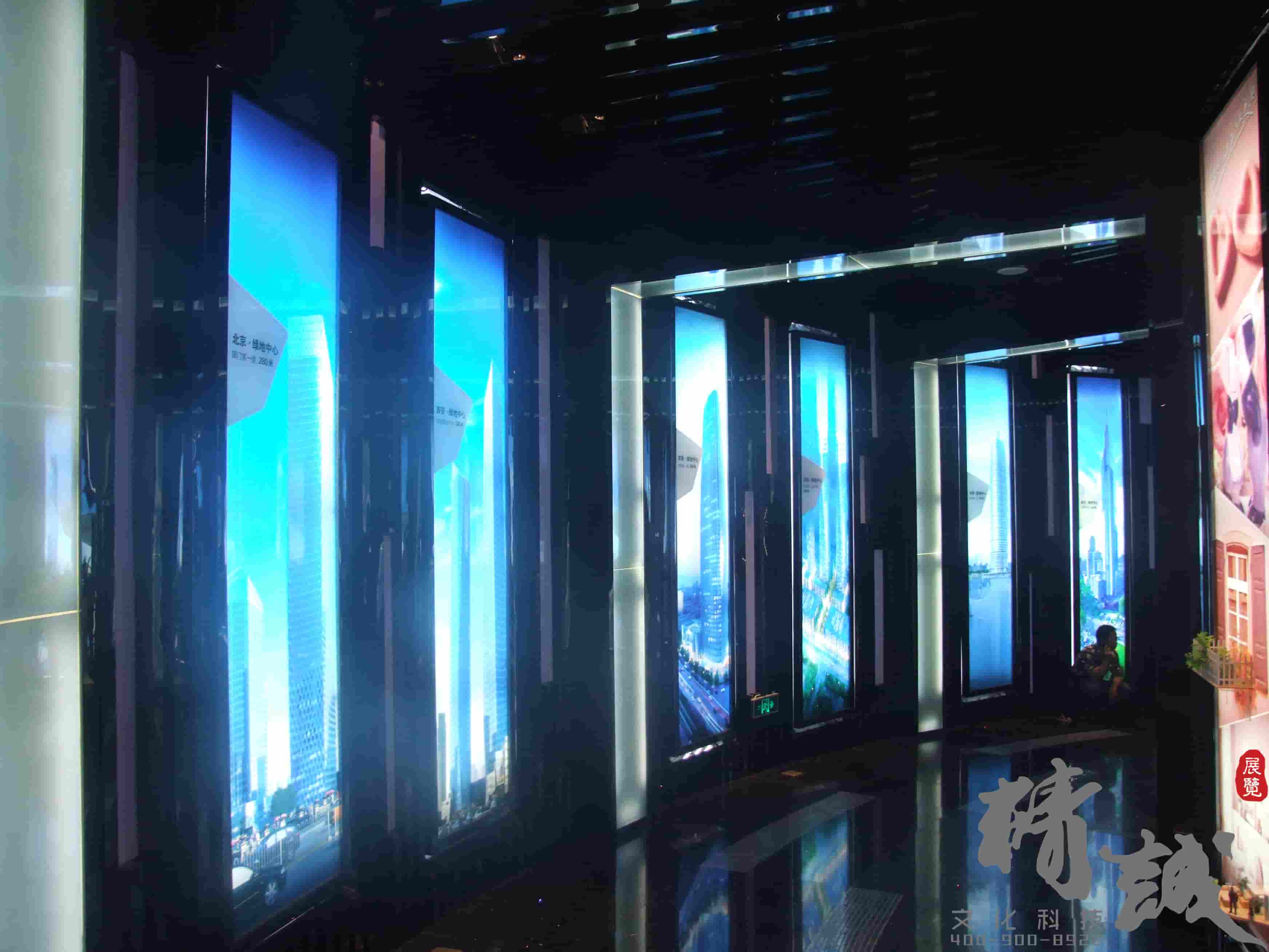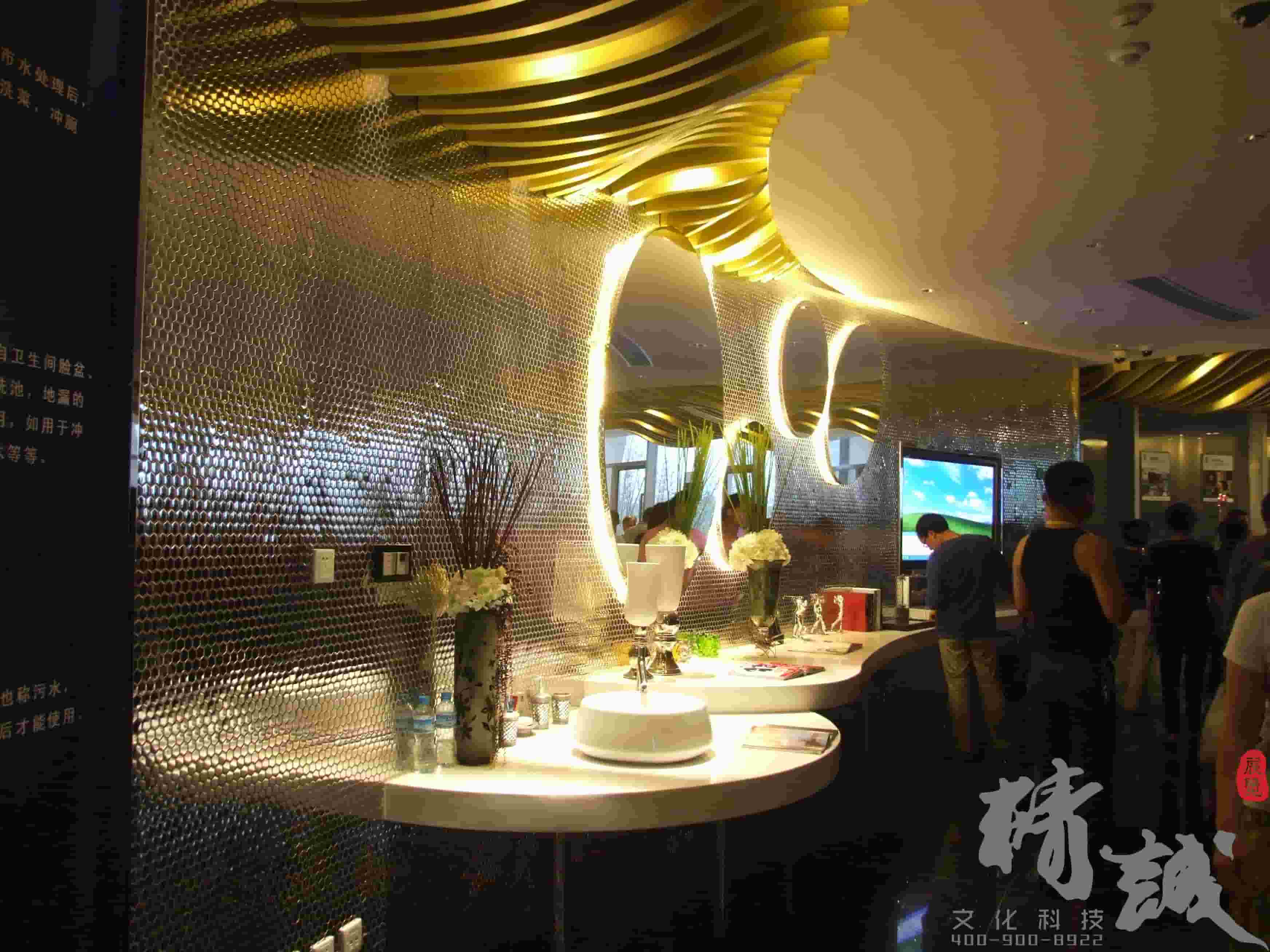 并且這個主要利用在現(xiàn)代裝飾風(fēng)格中融入生態(tài)元素,突顯生態(tài)館理念。區(qū)別于常規(guī)整體墻面造型,利用高低錯落有序的獨立墻體設(shè)計,使整個弧形墻面更加富有層次感;利用蜂巢狀的陣列造型,讓墻面顯得更加自然、生動。而藍(lán)色燈光的合理運(yùn)用,讓展廳在視覺效果上更加富有科技感。