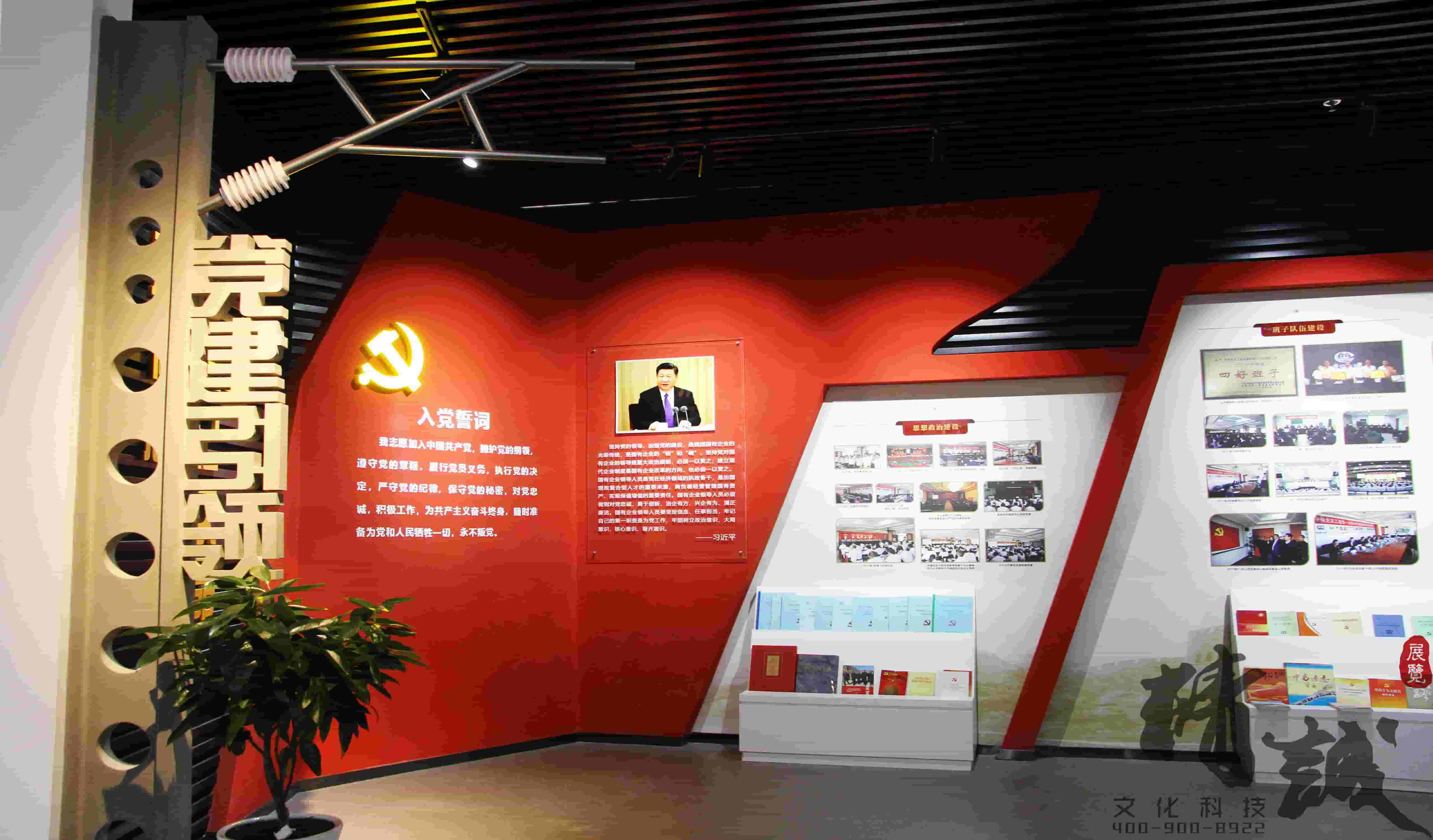 以黨徽、黨旗、入黨誓詞為指導(dǎo),圍繞“不忘初心 牢記使命”的時(shí)代主題,融入“V”字型展柜及企業(yè)黨建特色活動(dòng),體現(xiàn)黨對(duì)企業(yè)各項(xiàng)事業(yè)蓬勃發(fā)展的重要引領(lǐng)作用。