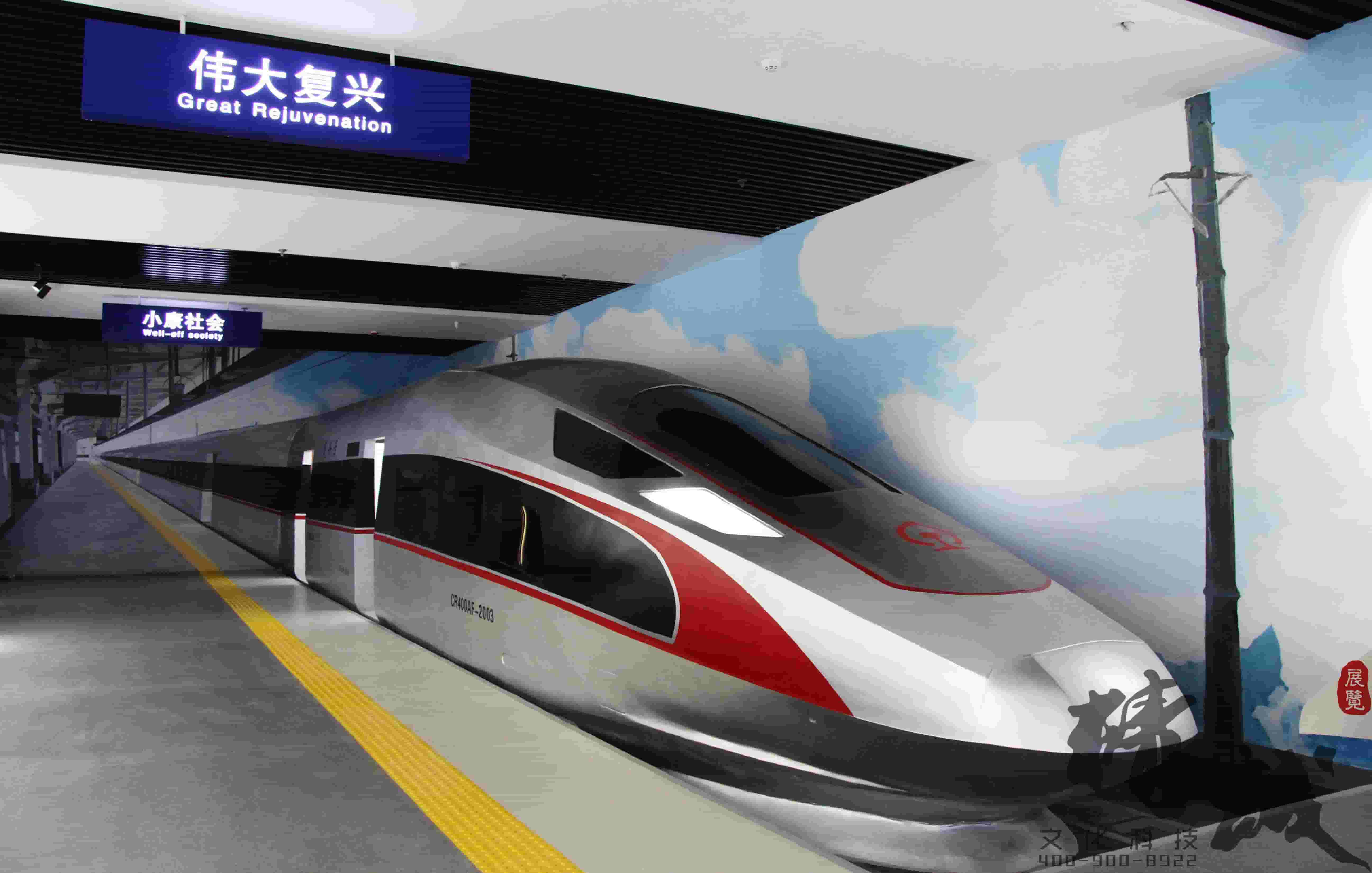 通過語音播報(bào):“歡迎您乘坐由一公司擔(dān)當(dāng)?shù)腉2018次復(fù)興號(hào)列車,本次列車是由小康社會(huì)站駛向偉大復(fù)興站......”,引導(dǎo)參觀者乘坐復(fù)興號(hào)高鐵模型,體現(xiàn)中鐵北京工程局一公司像復(fù)興號(hào)高鐵一樣,為實(shí)現(xiàn)中華民族偉大復(fù)興的中國(guó)夢(mèng)而繼續(xù)前行。