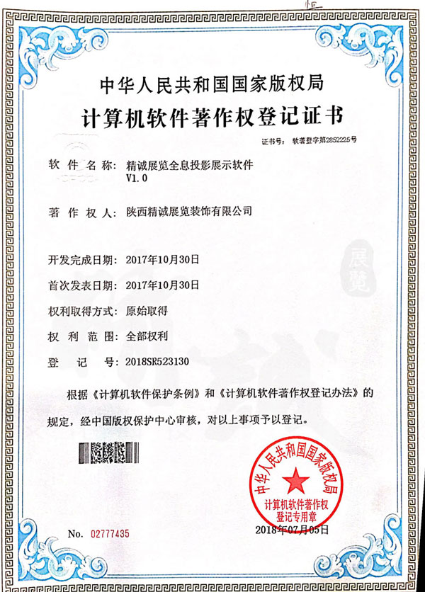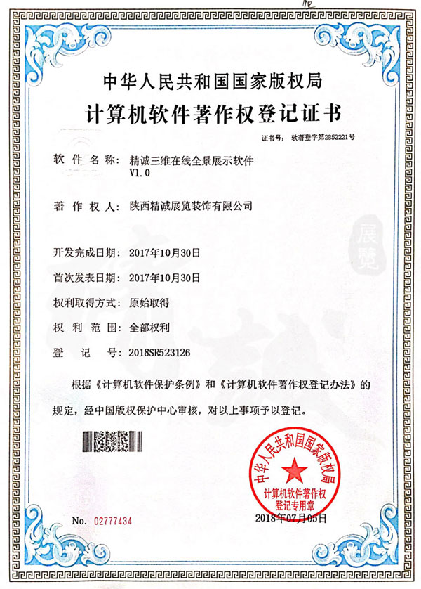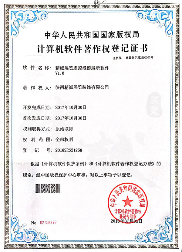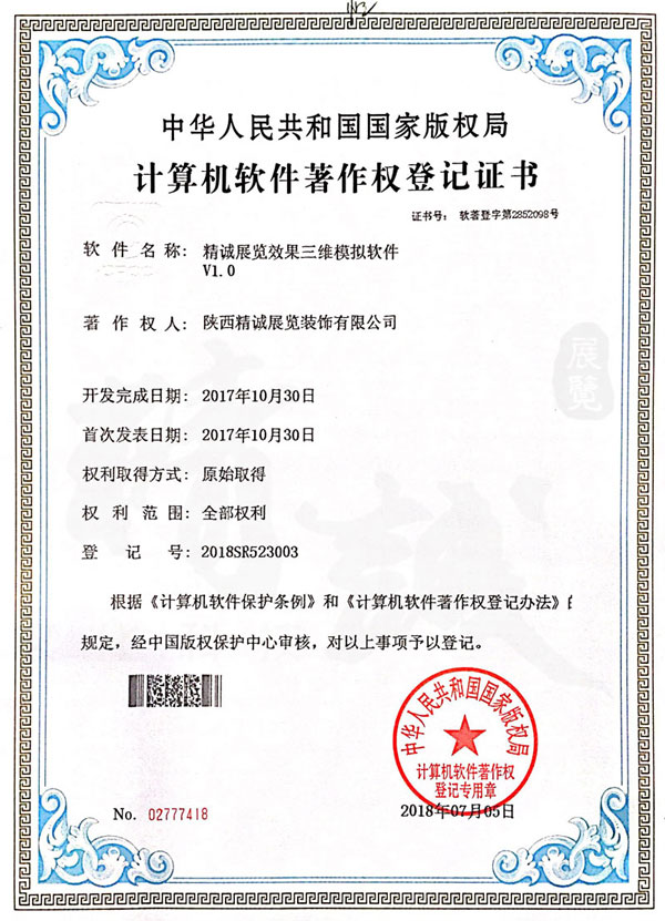 - 陜西精誠展覽裝飾有限公司計算機(jī)軟件著作權(quán)登記證書 -